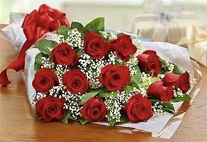 Beautiful Red Roses Wrapped with foliage, Baby’s Breath and Bow