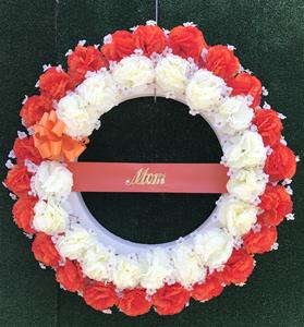 A (24 inch) Wreath in Fall Colors With MOM in Center