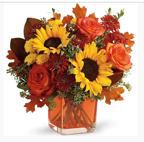Beautiful Fall Flowers Arranged in a Cube. Colors may vary