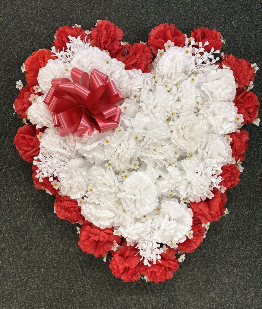 Large 24″ MOM or Dad Open Heart, beautifully arranged Silk Flowers, and Bow